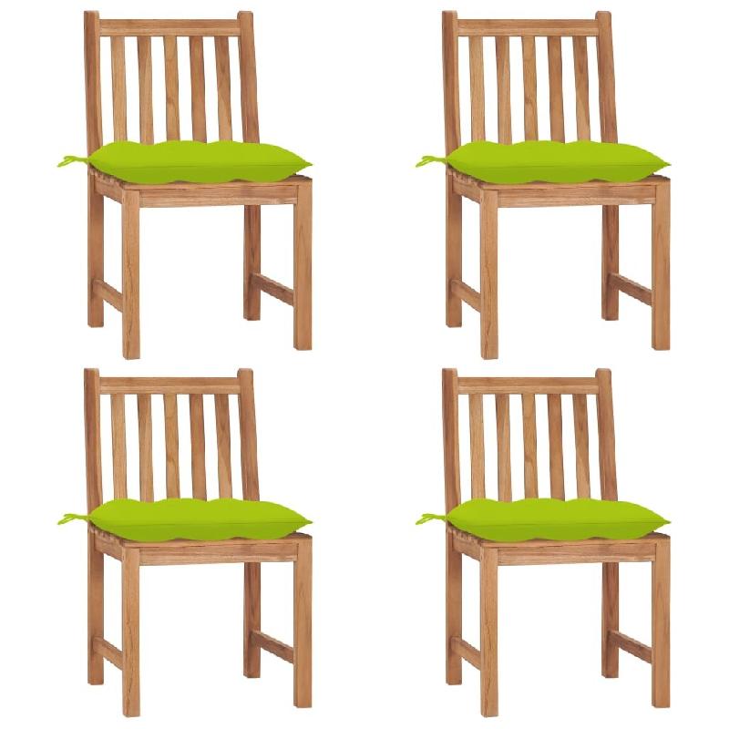 VidaXL Chaises De Jardin Lot De 4 Avec Coussins Bois De Teck Massif - vert 3073114