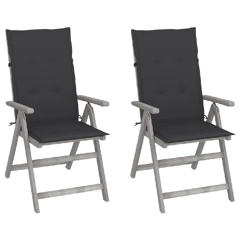 VidaXL Chaises Inclinables De Jardin Lot De 2 Et Coussins Bois Acacia - gris 3064698