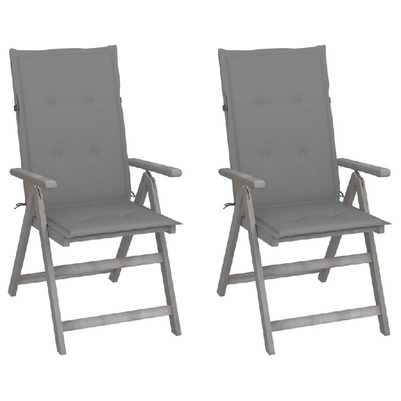 VidaXL Chaises Inclinables De Jardin Lot De 2 Et Coussins Bois Acacia - gris 3064699