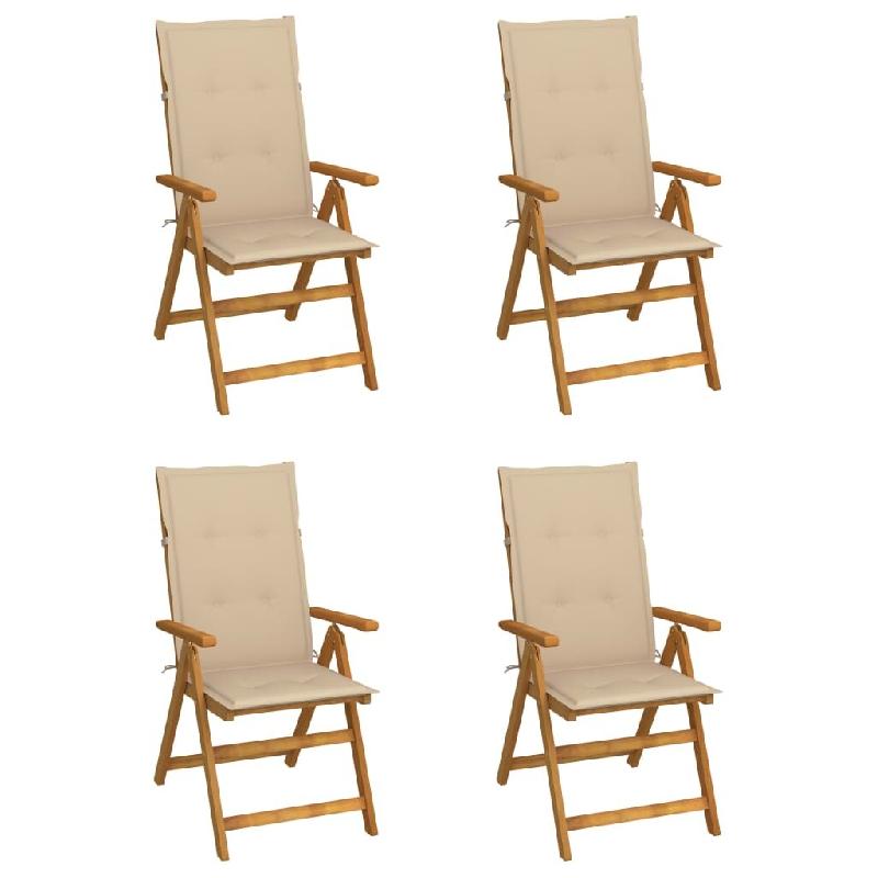 VidaXL Chaises Inclinables De Jardin Lot De 4 Et Coussins Bois Acacia - beige 3065350