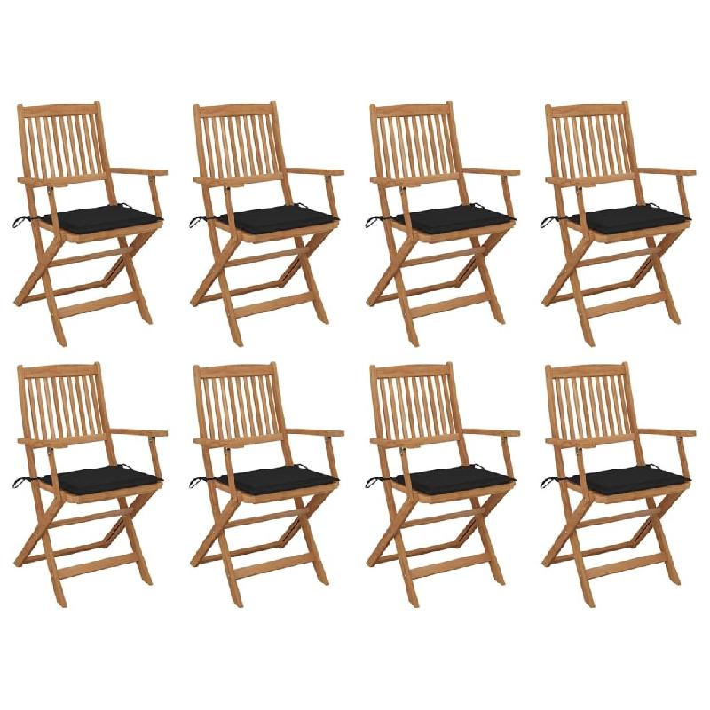 VidaXL Chaises Pliables D Extérieur Et Coussins Lot De 8 Bois D Acacia - noir 3075092