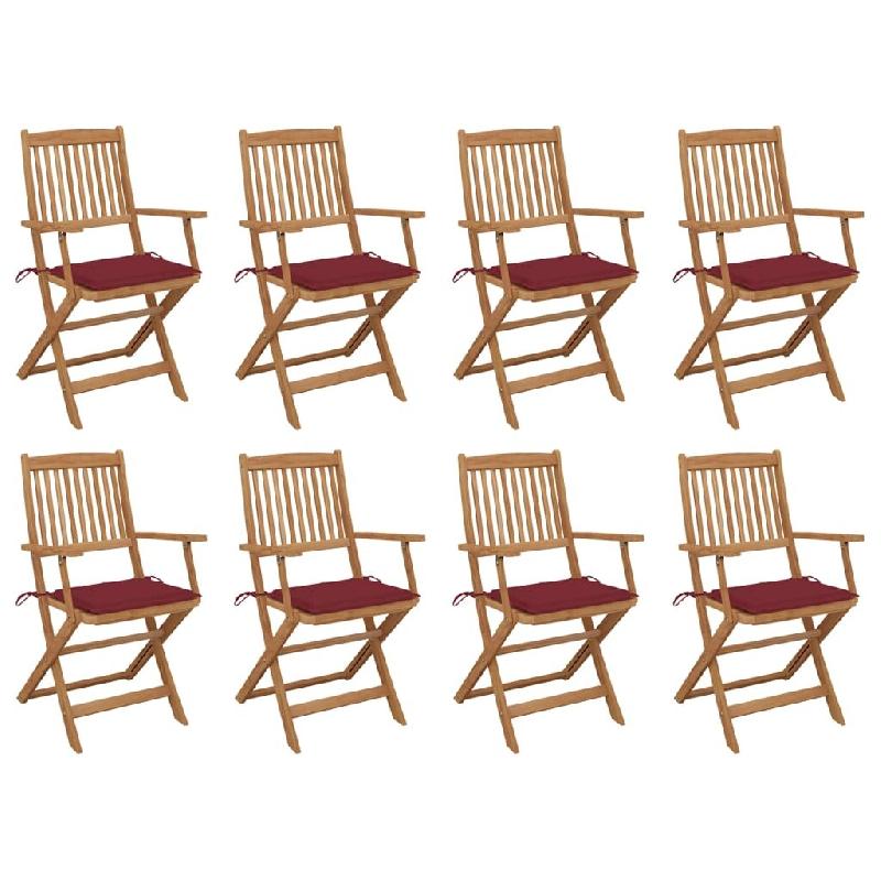 VidaXL Chaises Pliables D Extérieur Et Coussins Lot De 8 Bois D Acacia - rouge 3075094