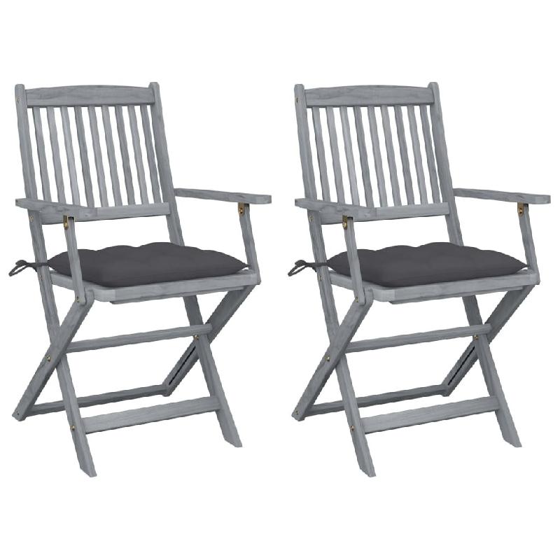 VidaXL Chaises Pliables D Extérieur Lot De 2 Et Coussins Bois D Acacia - gris 3064497