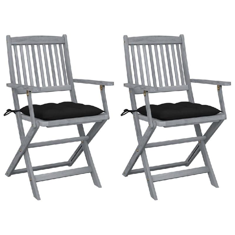 VidaXL Chaises Pliables D Extérieur Lot De 2 Et Coussins Bois D Acacia - noir 3064504