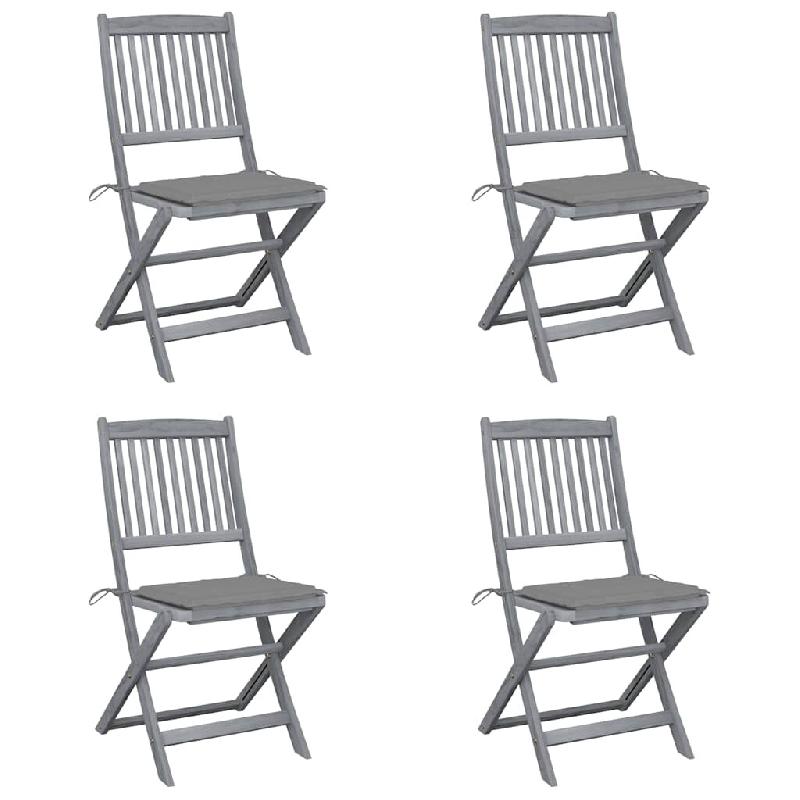 VidaXL Chaises Pliables D Extérieur Lot De 4 Et Coussins Bois D Acacia - gris 3064564