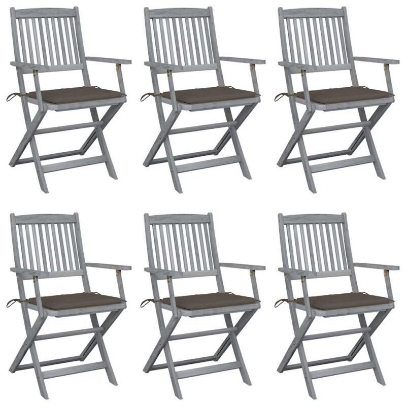 VidaXL Chaises Pliables D Extérieur Lot De 6 Et Coussins Bois D Acacia - gris 8720286296646