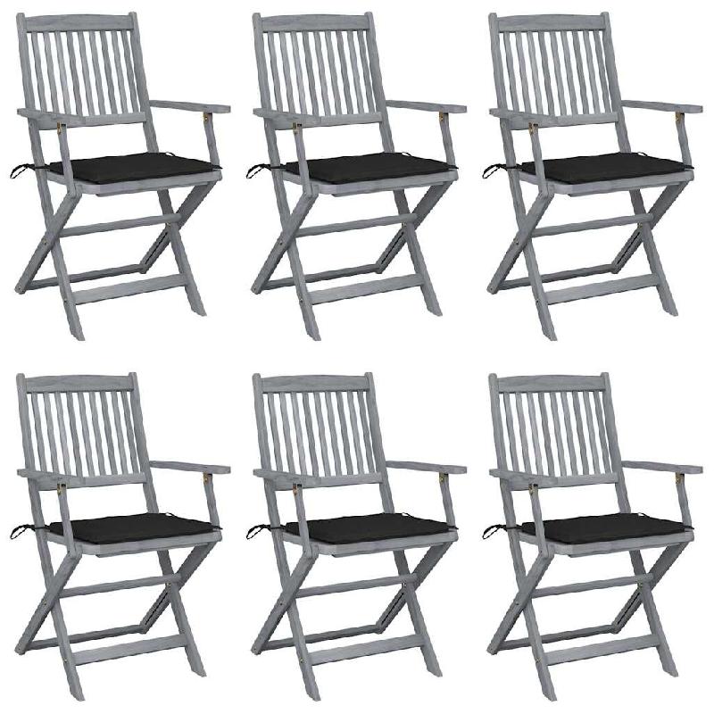 VidaXL Chaises Pliables D Extérieur Lot De 6 Et Coussins Bois D Acacia - noir 3065414