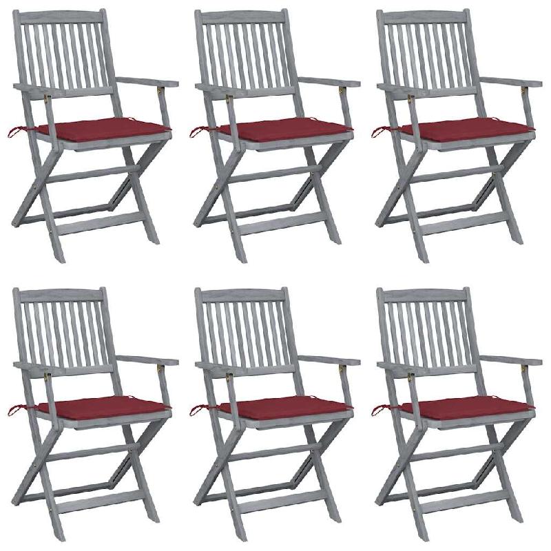 VidaXL Chaises Pliables D Extérieur Lot De 6 Et Coussins Bois D Acacia - rouge 3065416