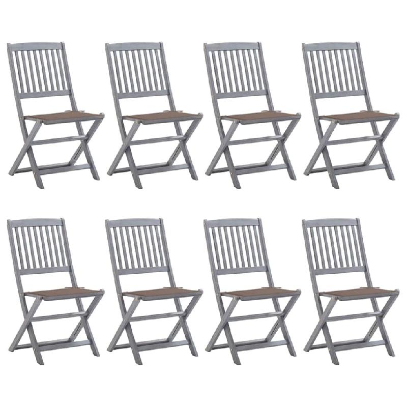 VidaXL Chaises Pliables D Extérieur Lot De 8 Et Coussins Bois D Acacia - gris 3078298