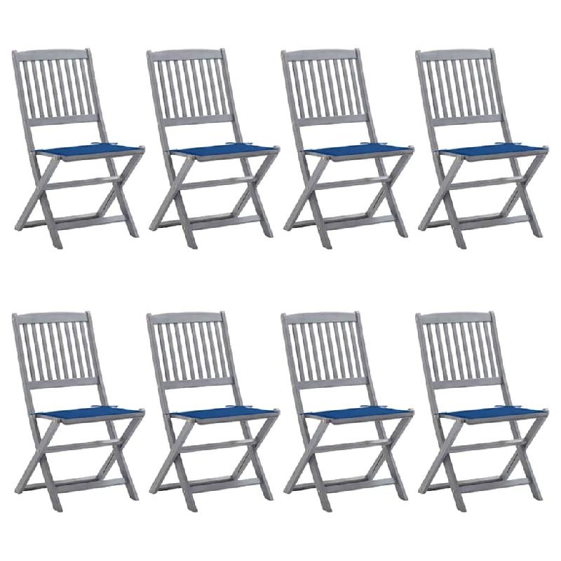 VidaXL Chaises Pliables D Extérieur Lot De 8 Et Coussins Bois D Acacia - gris 3078300