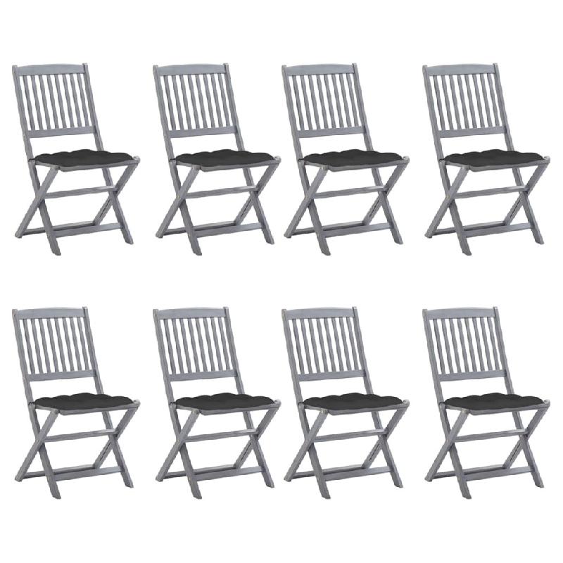 VidaXL Chaises Pliables D Extérieur Lot De 8 Et Coussins Bois D Acacia - gris 3078305