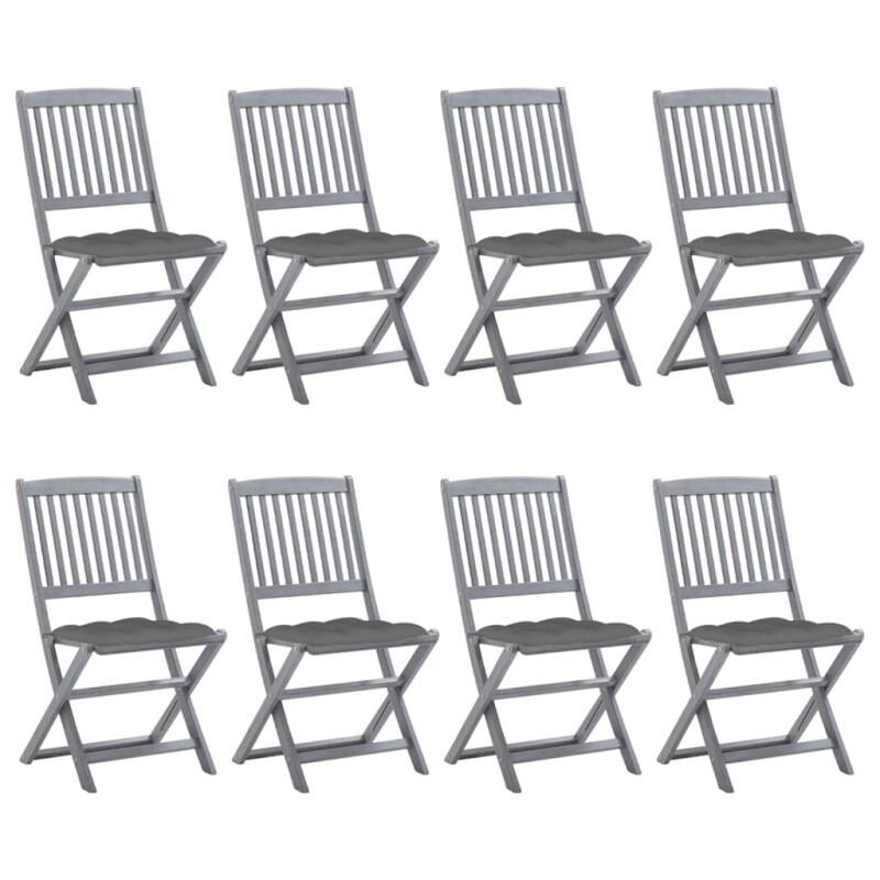 VidaXL Chaises Pliables D Extérieur Lot De 8 Et Coussins Bois D Acacia - gris 8720286508985