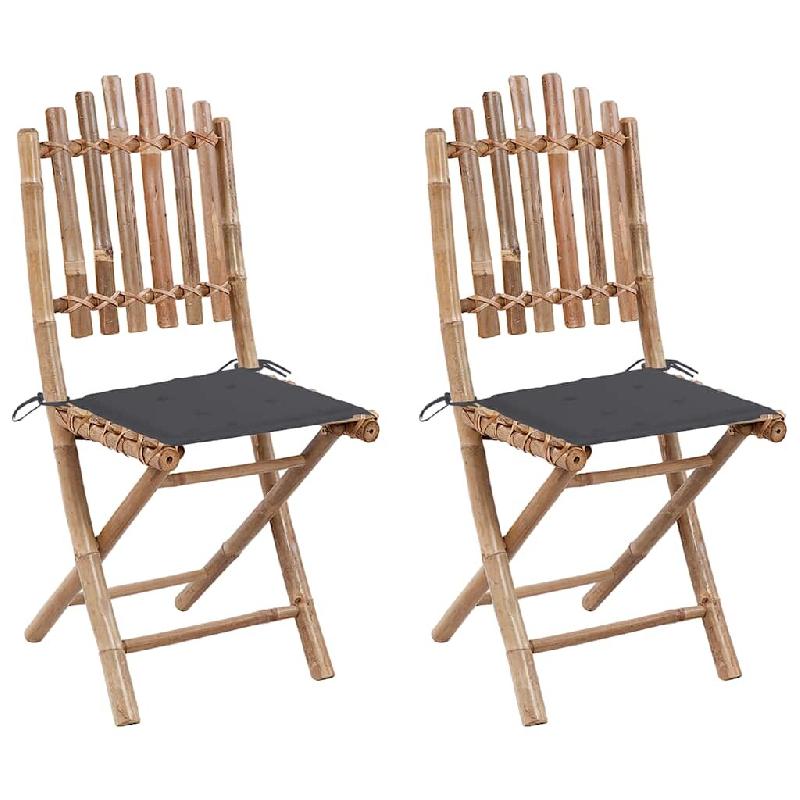 VidaXL Chaises Pliables De Jardin Lot De 2 Avec Coussins Bambou - gris 3063987