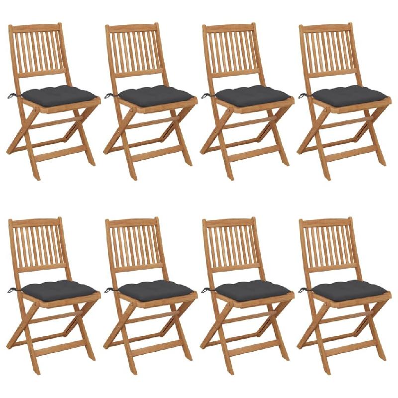 VidaXL Chaises Pliables De Jardin Lot De 8 Avec Coussins Bois D Acacia - gris 3075036
