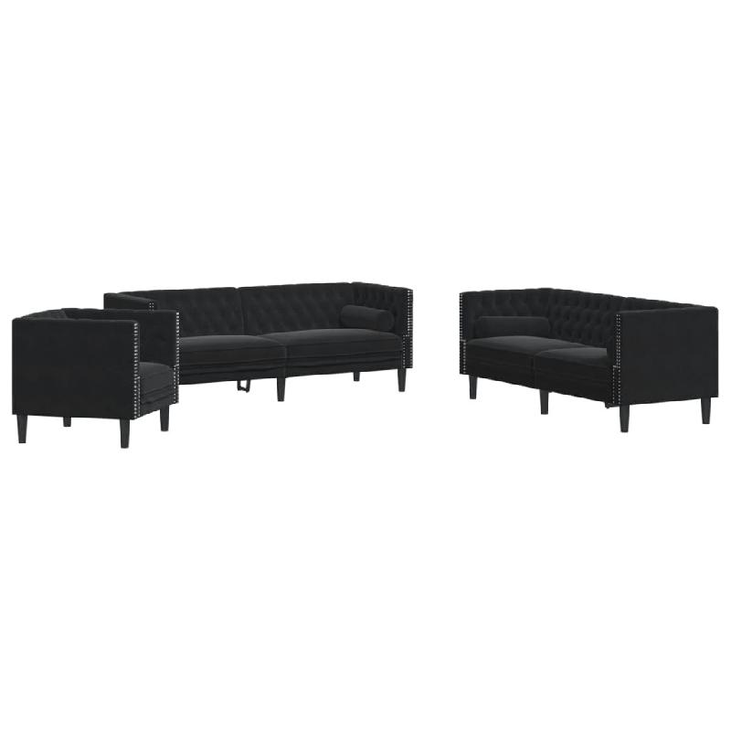 VidaXL Ensemble de canapé Chesterfield et traversins 3pcs noir velours Modèle Yervélis - 3209286