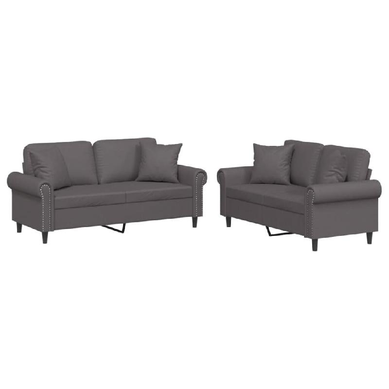 VidaXL Ensemble de canapés 2 pcs avec coussins gris similicuir Modèle Delvaris - 3202162