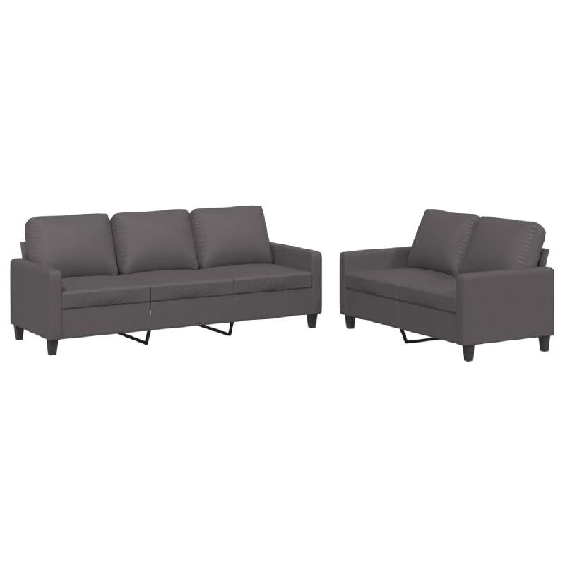 VidaXL Ensemble de canapés 2 pcs avec coussins Gris Similicuir Modèle Nectar Plus - 3201420