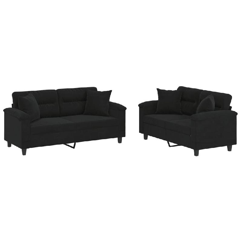 VidaXL Ensemble de canapés 2 pcs avec coussins Noir Tissu microfibre Modèle Hervessa - 3202329