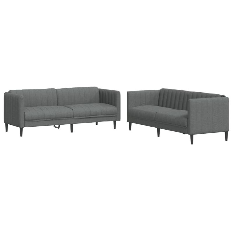 VidaXL Ensemble de canapés 2 pcs gris foncé tissu Modèle Elmontia - 3209239