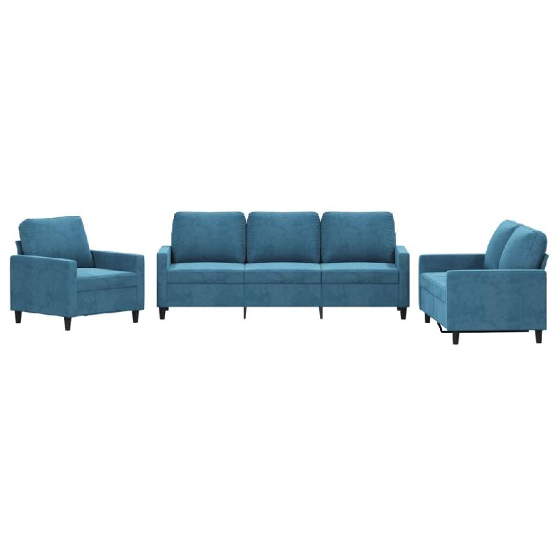 VidaXL Ensemble de canapés 3 pcs avec coussins Bleu Velours Modèle Tradition Élite - 3201485