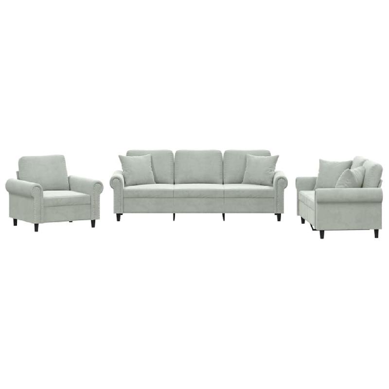 VidaXL Ensemble de canapés 3 pcs avec coussins gris clair velours Modèle Farlionis - 3202190