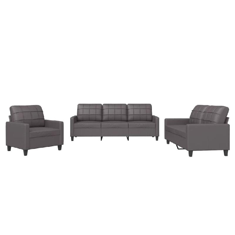 VidaXL Ensemble de canapés 3 pcs avec coussins Gris Similicuir Modèle Fantaisie Plus - 3201340