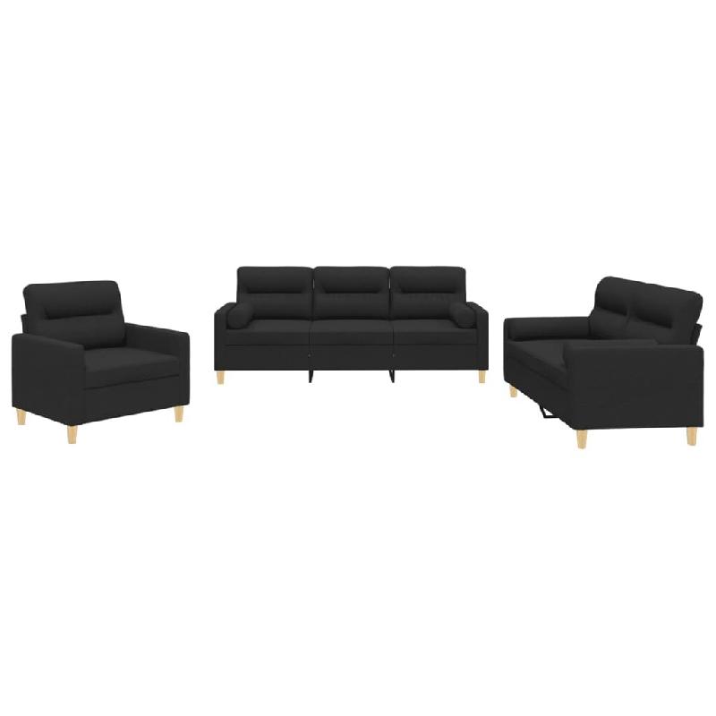 VidaXL Ensemble de canapés 3 pcs avec coussins noir tissu Modèle Cristal Pro - 3201556