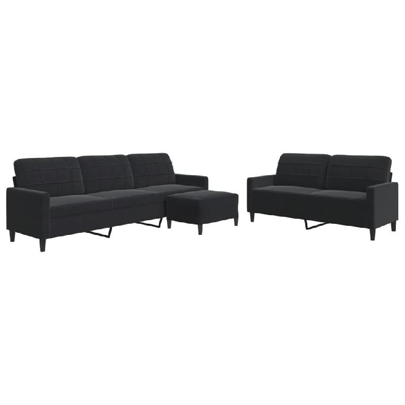 VidaXL Ensemble de canapés 3 pcs avec coussins Noir Velours Modèle Servan - 3278486
