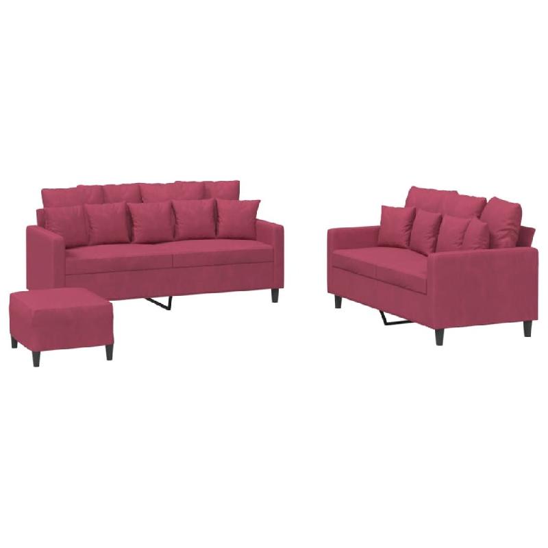 VidaXL Ensemble de canapés 3 pcs avec coussins Rouge bordeaux Velours Modèle Sirius Classique - 3201714