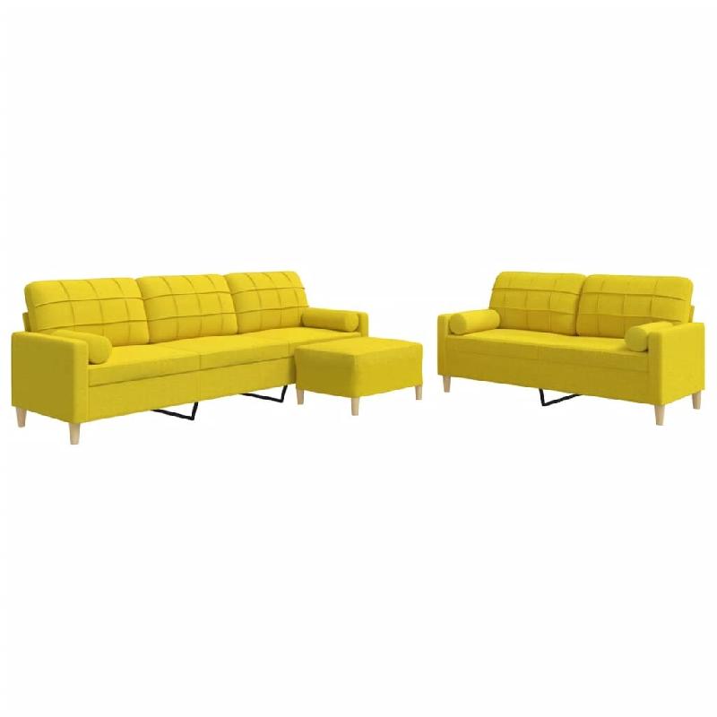 Cet ensemble de canapés est un excellent endroit pour discuter, lire, regarder la télévision ou simplement vous détendre. Il est destiné à être un point central de votre maison. Matériau doux et durable : le tissu en polyester offre une combinaison de douceur, de respirabilité et de durabilité, vous garantissant un confort et une convivialité ultimes. Cadre robuste et stable : le cadre en métal du canapé en tissu assure robustesse et stabilité. Expérience d'assise confortable : le canapé est très confortable avec les sièges, les accoudoirs et les oreillers de dossier bien rembourrés. Oreillers cylindriques pratiques : ces oreillers cylindriques non seulement embellissent votre décor, mais ils peuvent également apporter un confort supplémentaire lorsque vous êtes assis ou allongé. Pouf polyvalent : ce repose-pied convient pour reposer vos pieds lorsque vous êtes allongé dans un canapé, ou pour vous offrir un siège supplémentaire dans votre pièce. De plus, le design simple et la taille compacte le rendent idéal pour presque tous vos espaces de vie.