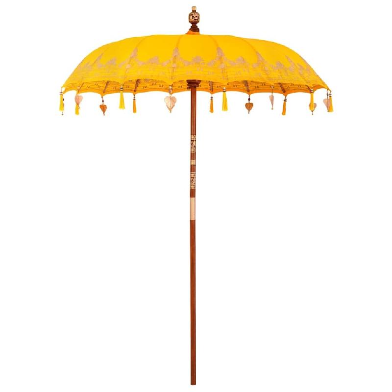 Le parasol balinais est un superbe parasol de jardin qui ajoute une touche d'élégance à toute terrasse. Ce modèle offre un canopy rond en coton avec des broderies faites main qui le rendent vraiment unique. Parfait pour l'été, il dégage une ambiance tropicale tout en offrant une ombre essenti