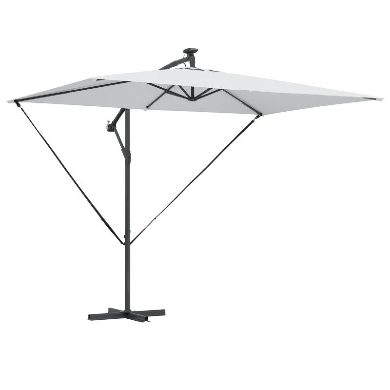 Cet élégant parasol avec lumières LED est un excellent choix pour créer un peu d'ombre et de protection contre les rayons UV nocifs du soleil. Lorsque le soleil se couche, les LED illumineront votre espace de vie extérieur. La housse de parasol, en polyester anti - UV et anti - décoloration, v