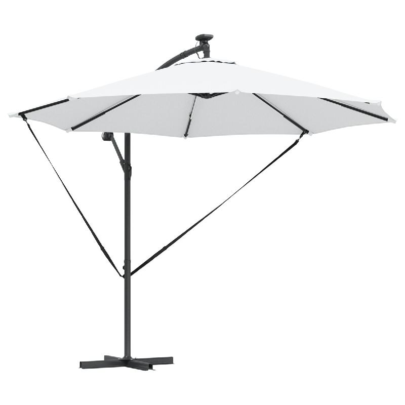 Ce parasol cantilever est vraiment le centre d'attention pour ton espace extérieur. Avec un design moderne et simple, il allie style et fonctionnalité, idéal pour les jardins, balcons ou terrasses. Sa polyvalence le fait s'harmoniser parfaitement avec des meubles d'extérieur contemporains, offrant ombre et ambiance que ce soit pour des moments de détente ou des soirées entre amis. Rotation à 360°: Ce parasol a un design super pratique qui permet une rotation à 360 degrés, parfait pour l'ajuster facilement et te protéger du soleil toute la journée. Il est idéal pour les jardins animés et les repas en extérieur. Tissu résistant aux UV: Fabriqué en polyester avec un traitement spécial, le auvent de ce parasol résiste aux UV. Ça protège contre la décoloration et les dommages du soleil, gardant ton espace extérieur bien en forme même pendant les chauds mois d'été. Éclairage LED: Avec ses bandes LED à énergie solaire, ce parasol a une touche chic et pratique. Ces lumières sont parfaites pour rendre tes soirées plus magiques, permettant de rester dehors même après le coucher du soleil. Mécanisme à manivelle manuelle: Ce parasol s'ouvre et se ferme facilement grâce à sa manivelle, te donnant de l'ombre en un clin d'œil. Le système est simple à utiliser, même les jours venteux. Cadre en aluminium robuste: La structure en aluminium assure un bon soutien sans peser lourd. C'est léger mais solide, donc le parasol reste bien en place dans différentes conditions extérieures.
