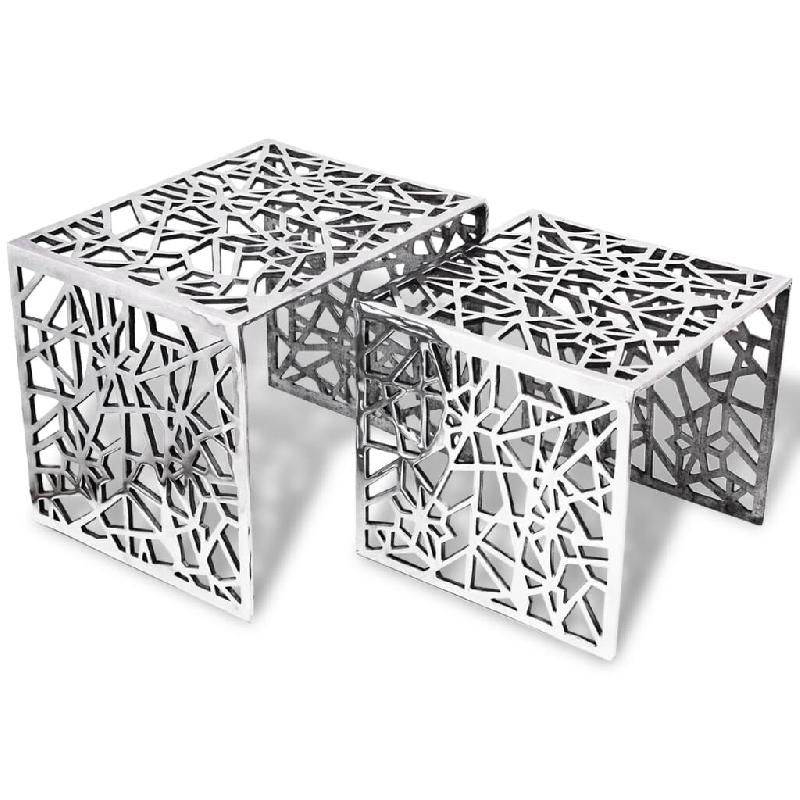 VidaXL Table auxiliaire carrée 2 pièces Aluminium Argenté Modèle Orion Bois - 243508