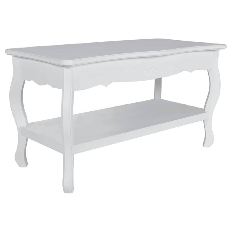 Fabriquée de façon mode, cette table basse à deux niveaux est laquée en blanc. Avec une fabrication raffinée, il s'agira d'une mise à jour instantanée de votre intérieur de salon. Que vous soyez à la recherche d'une table basse pour vos boissons ou autres nécessités, ou d'une table d'appoint avec fonction de rangement, cette table a tout pour plaire. Les étagères ouvertes distinctives apportent une organisation astucieuse aux magazines, livres et plus, tandis que le design contemporain avec un flair de style provincial français complimente le décor existant de votre maison. Faite de bois de pin massif de haute qualité, cette table basse est construite pour durer. Remarque : puisque ce meuble est fabriqué à la main, fait de bois et peint en blanc, il peut présenter des petits défauts.