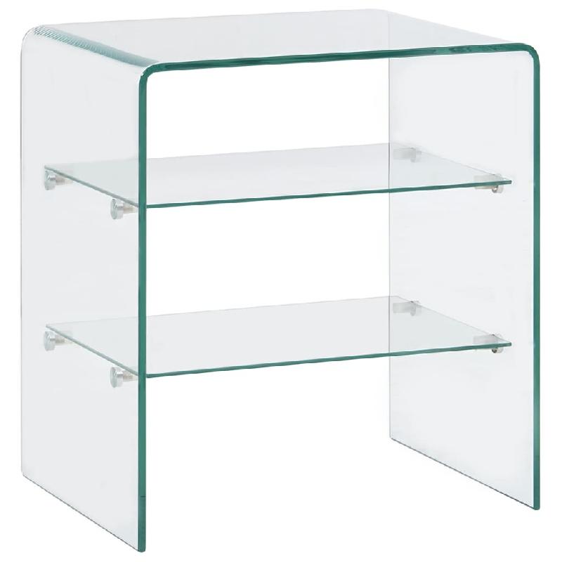 - Épaisseur du verre : plateau de 10 mm / étagères de 5 mm