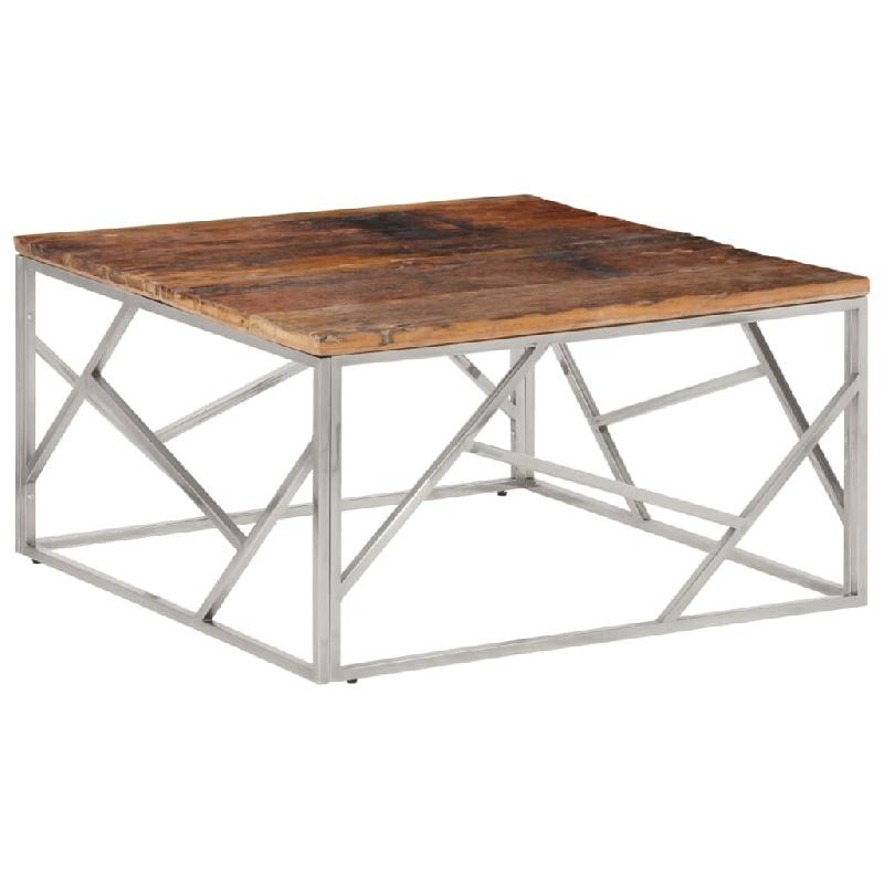 VidaXL Table basse argenté inox et bois de mélèze massif Modèle Savane Moderne - 349949