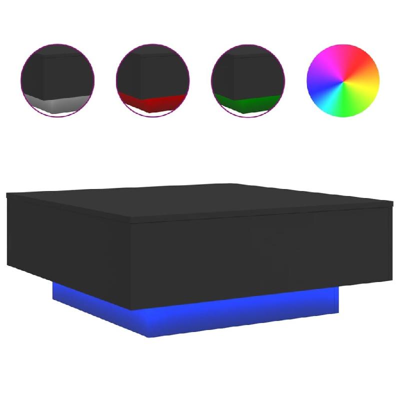 VidaXL Table basse avec lumières LED noir 80x80x31 cm Modèle Nova Design - 836589