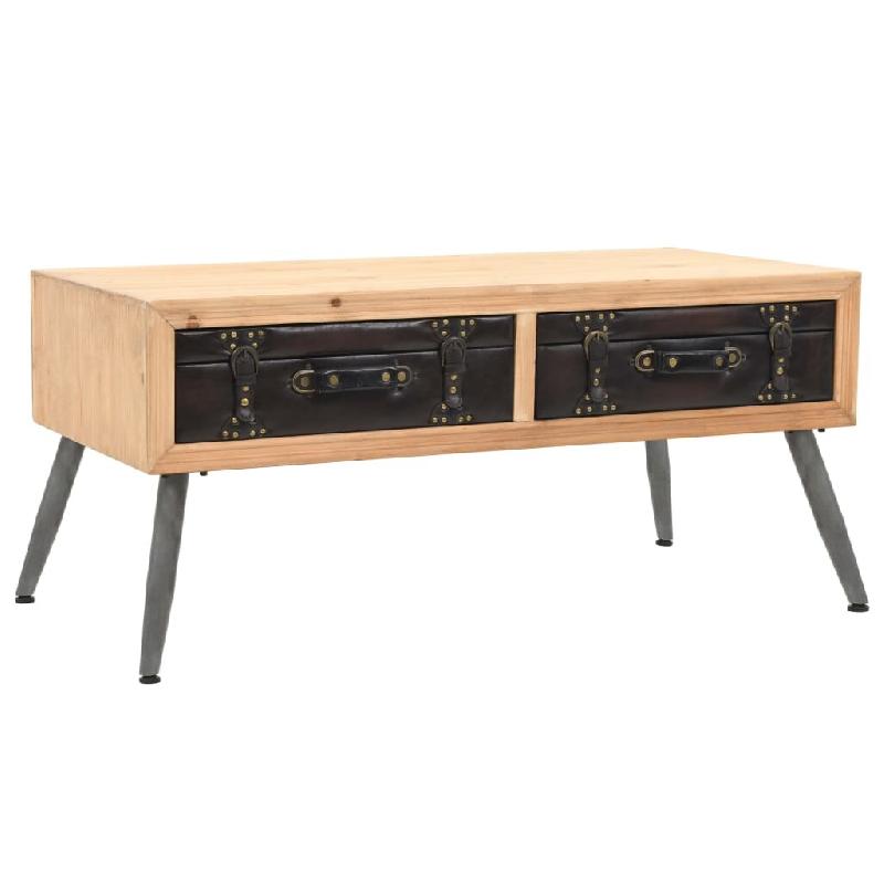 Cette table basse en bois de style rétro avec des façades de tiroirs au design de valise ajoutera une touche décorative à la décoration de votre salon. Cette table d'appoint très stable et durable a été fabriquée en bois de sapin massif. Le dessus robuste est idéal pour placer des paniers de fruits, des vases ou d'autres objets décoratifs. Les tiroirs offrent suffisamment d'espace pour ranger vos différents objets de façon ordonnée. Les façades de tiroirs au design unique ajoutent au style vintage de la table. L'assemblage est facile.