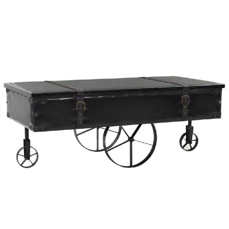 Cette table basse unique en forme de coffre de voyage ajoutera une touche d'élégance à votre décoration avec son design industriel spectaculaire. Elle peut également être utilisée comme table d'appoint ou table de bout. Cette table durable et belle est faite de MDF et de bois de sapin solide couvert en similicuir capitonné ; 2 grandes roues sont pour la décoration et ajoutent à son style industriel. Le dessus de table est idéal pour placer des boissons, des vases, des plantes en pot, des corbeilles de fruits et d'autres objets décoratifs. Les 2 petites roues facilitent le déplacement de la table. La table sous forme de coffre est facile à assembler.