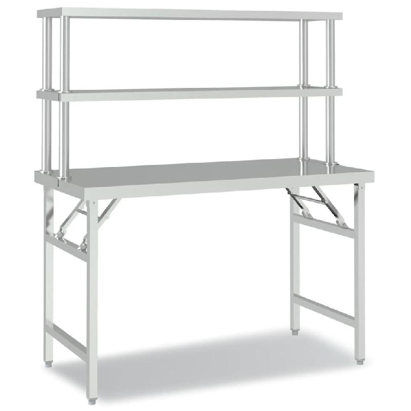 VidaXL Table de travail de cuisine avec étagère 120x60x145 cm Inox - 3155992