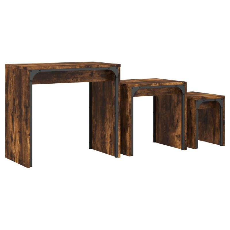 VidaXL Tables basses gigognes 3 pcs chêne fumé bois d'ingénierie Modèle Lofty Bar - 837824