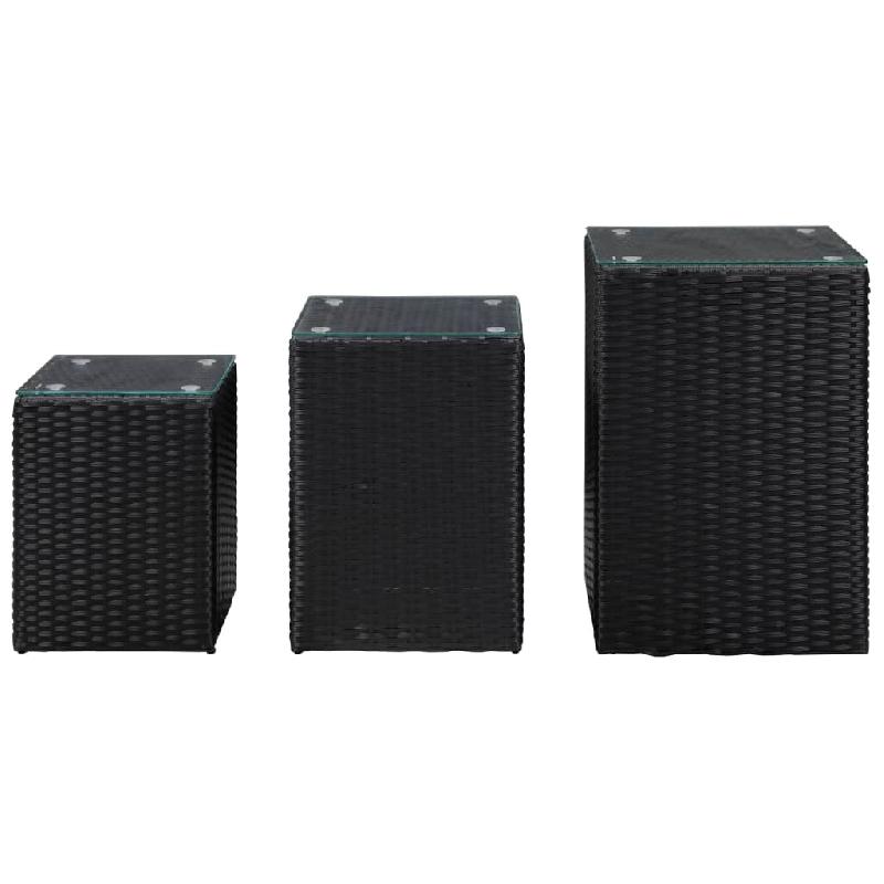 VidaXL Tables d'appoint 3 pcs et dessus en verre Noir Résine tressée Modèle Outdoor Polaris Prime Plus - 46984