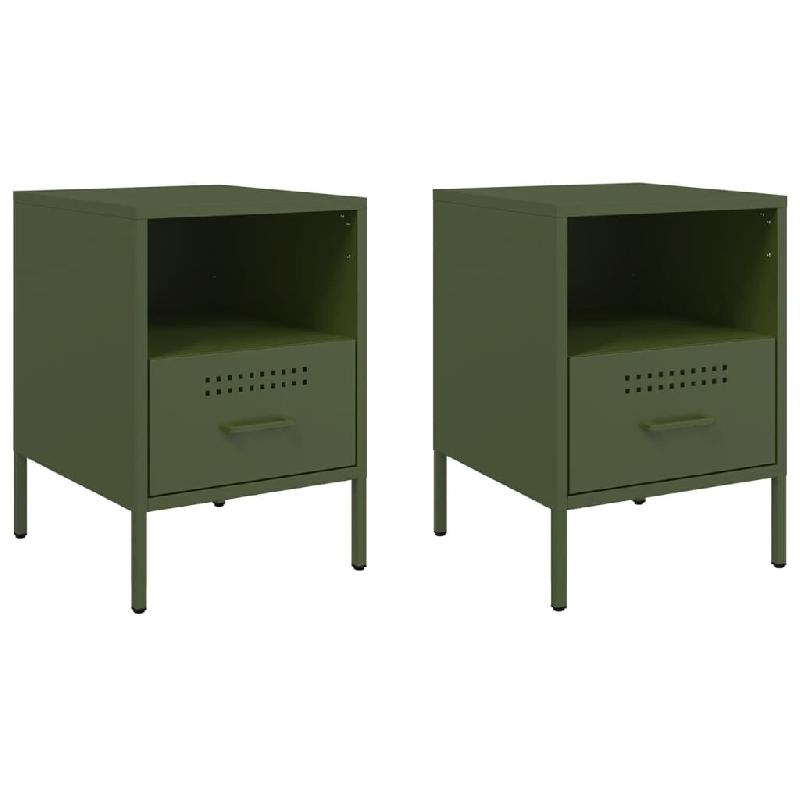 VidaXL Tables de chevet 2 pcs vert olive 36x39x50,5 cm acier – Modèle Jasmin - 843063