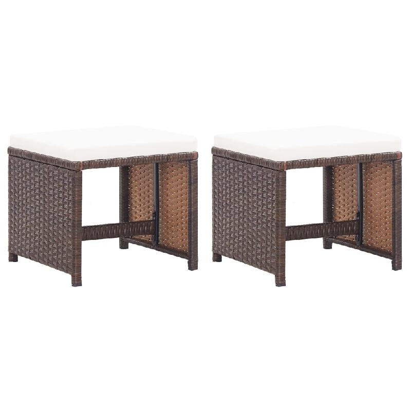 VidaXL Tabourets De Jardin Lot De 2 Et Coussins Résine Tressée Marron - marron 46417