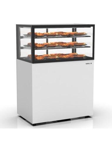 Vitrine chauffante sur base SAYL Integra IN100/50-140C - Chaleur sèche - 1000 mm, 3 niveaux La vitrine chauffante SAYL Integra IN100/50-140C est une vitrine sur base haute de 1000 mm, conçue pour le maintien au chaud de vos préparations par chaleur sèche jusqu'à 70°C en boulangerie, pâtisserie, snacking et restauration professionnelle. Sa hauteur totale de 1400 mm avec base haute offre une ergonomie optimale pour le service et la présentation. Son double vitrage trempé basse émissivité thermique garantit une visibilité parfaite même dans les conditions les plus exigeantes. Idéale pour la présentation de tapas, viennoiseries, snacks et plats chauds non humides, elle est prête à l'emploi dès la mise en place. Dimensions