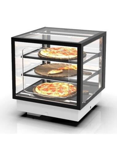 Vitrine chaude fermée avec : - Vitre bombée basculante - Éclairage halogène intégré - Plan de présentation incliné à 5° - Profondeur utile : 700 mm - Caractéristiques : - Régulation électronique de la température - Remplissage en eau automatique - Hygrométrie contrôlée - So