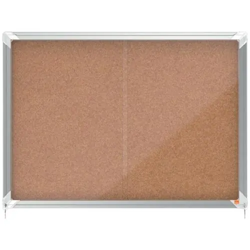 8700581 - Vitrine modèle Algol pour l'affichage de 15 feuilles A4Avec fond métallique Pour un usage en intérieur. Glaces coulissantes en verre trempé épaisseur 4 mm sur roulements à billes. Cadre aluminium anodisé avec coins arrondis injectés gris. Serrure à piston discrète permettant une