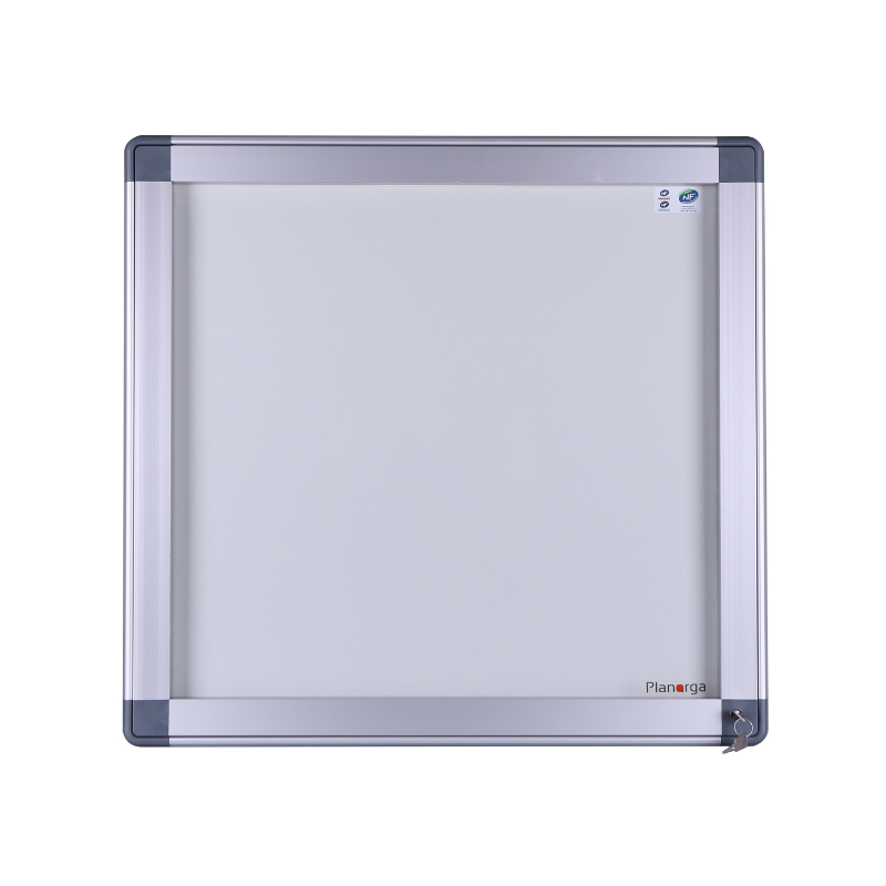 Vitrine fine et discrète. Sa surface d'affichage maximum est de 9 feuilles. Elle est fermée à l'aide d'une porte battante et vous pourrez l'installer charnières à droite ou charnières à gauche, en fonction de votre besoin. C'est une vitrine " pleine - vue " : l'absence d'entourage d