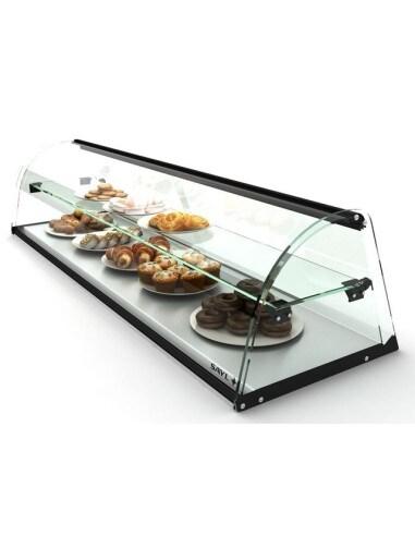 Vitrine neutre à poser SAYL E26 - Vitre bombée en verre trempé La vitrine neutre SAYL E26 est une vitrine d'exposition à poser sur table ou comptoir, conçue pour la présentation élégante de produits alimentaires ou non alimentaires : pâtisseries, sandwichs, confiseries et tout produit non
